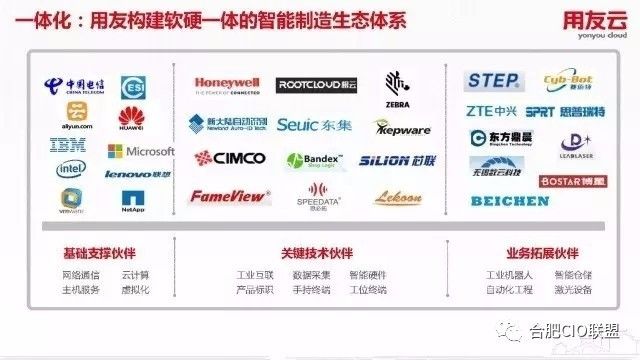 大家知道制造非常复杂的,没有一个厂商能提供整体解决方案,所以说要构建软硬一体化整体解决方案,用友发起牵头,联合了36家产业链伙伴,能给我们所有制造客户提供软硬一体化的整体解决方案。