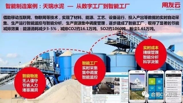 天瑞水泥从数字工厂到智能工厂的案例,实现了实时采集、集中调度和集中监护、智能管理、精细化实时成本计算。这是我们给他们做的一个智能物流的监控图。