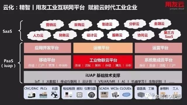 用友发布了精智工业互联网平台。精智工业互联网平台,关键是中间的工业物联网的云平台,七个平台组成的SaaS平台。