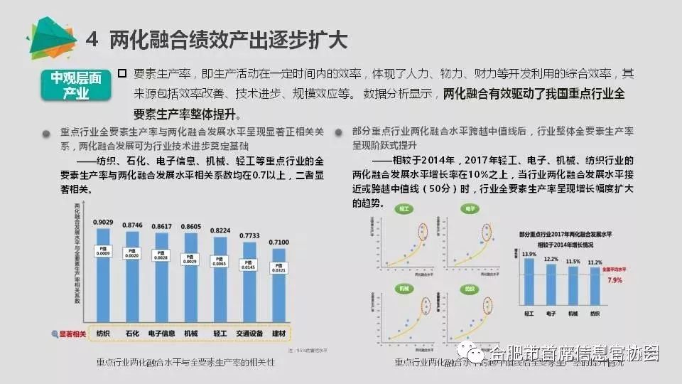 两化融合有效驱动了我国重点行业全要素生产率整体提升;