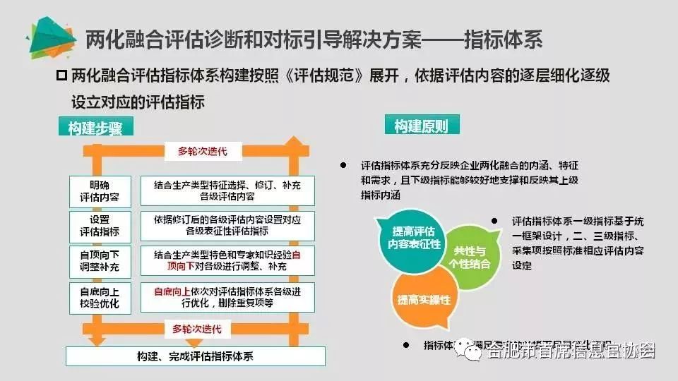 两化融合评估指标体系构建按照《评估规范》展开,依据评估内容的逐层细化逐级设立对应的评估指标。