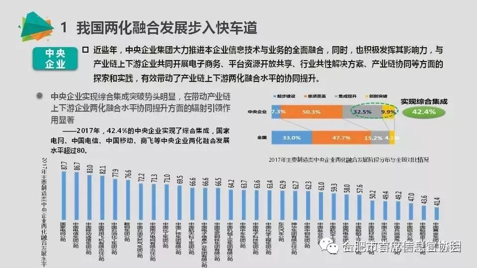 中央企业:中央企业实现综合集成突破势头明显,在带动产业链上下游企业两化融合水平协同提升方面的辐射引领作用显著。