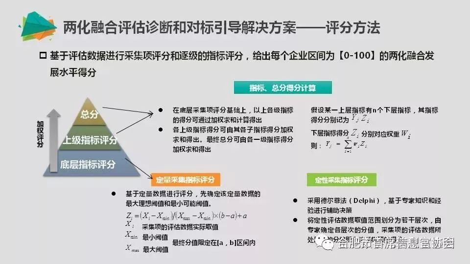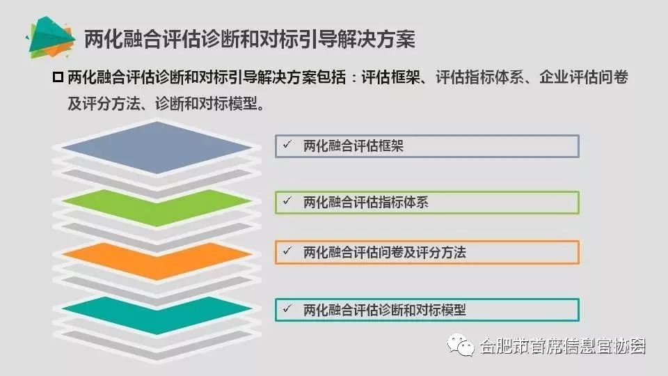 两化融合评估诊断和对标引导解决方案包括评估框架、评估指标体系、企业评估问卷及评分方法、诊断和对标模型。