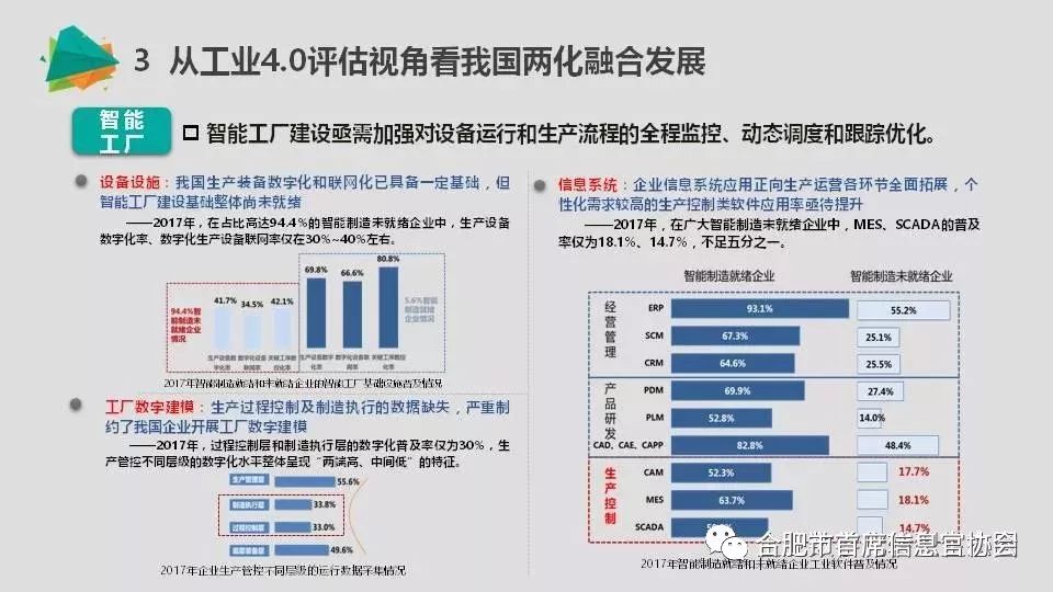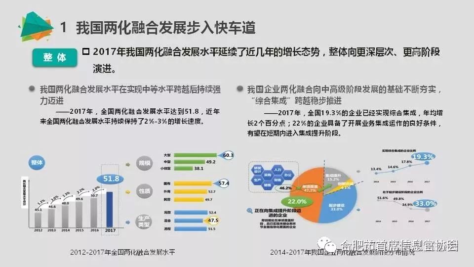 整体:2017年我国两化融合发展水平延续了近几年的增长态势,整体向更深层次、更高阶段演进;