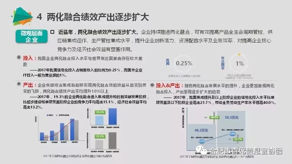 企业突破综合集成后能够实现两化融合效能效益从量变到质变的飞跃,两化融合绩效产出平均提升10%以上;