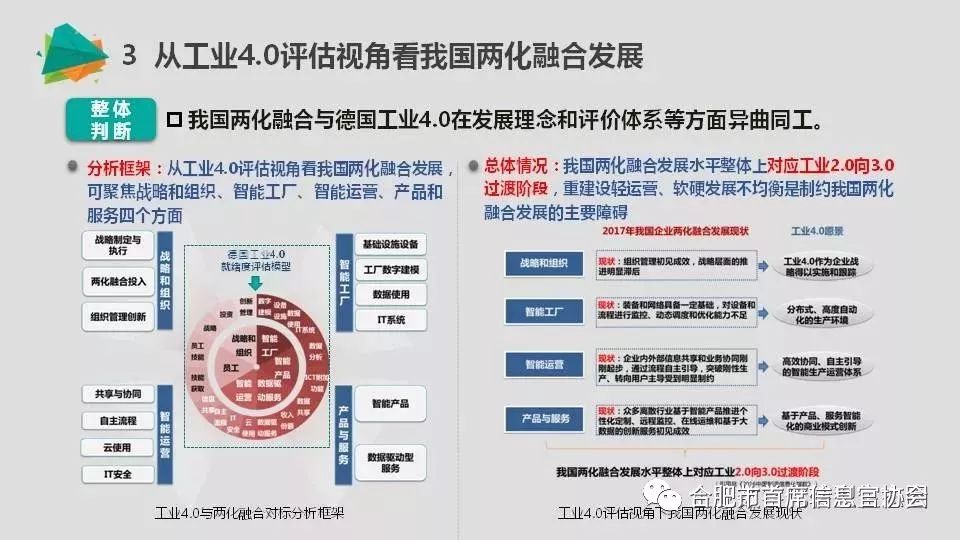 整体判断:我国两化融合与德国工业4.0在发展理念和评价体系等方面异曲同工;