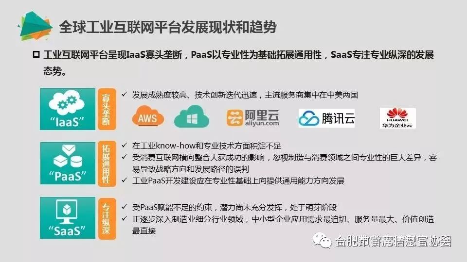 工业互联网平台呈现IaaS寡头垄断,PaaS以专业性为基础拓展通用性,SaaS专注专业纵深的发展态势;