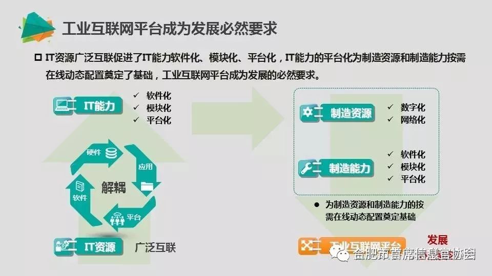 IT资源广泛互联促进了IT能力软件化、模块化、平台化,IT能力的平台化为制造资源和制造能力按需在线动态配置奠定了基础,工业互联网平台成为发展的必然要求。