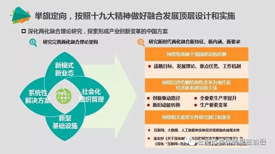 研究完善两化融合理论框架:新型基础设施、系统性解决方案、社会化组织管理、新模式新业态。