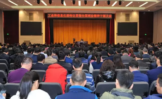 3月16日上午,工业和信息化部召开干部大会,传达学习和贯彻全国“两会”精神。工业和信息化部党组书记、部长苗圩同志代表部党组传达会议精神并提出贯彻落实要求。部党组成员、总工程师、近期退出班子的部领导、部机关副处级以上干部、在京部属单位和部属高校领导班子成员约500人参加了会议。