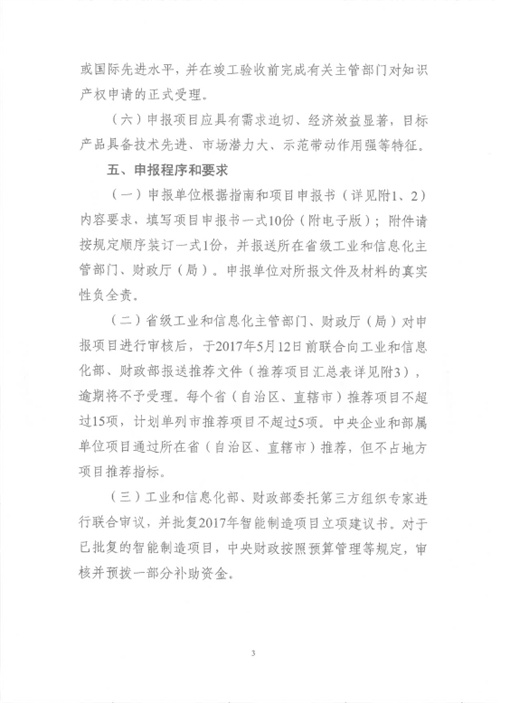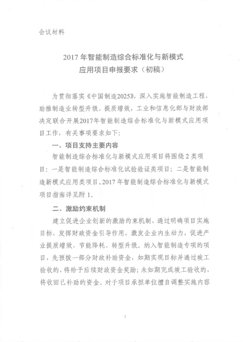 2017年智能制造综合标准化与新模式应用重点项目库项目申报要求(初稿)