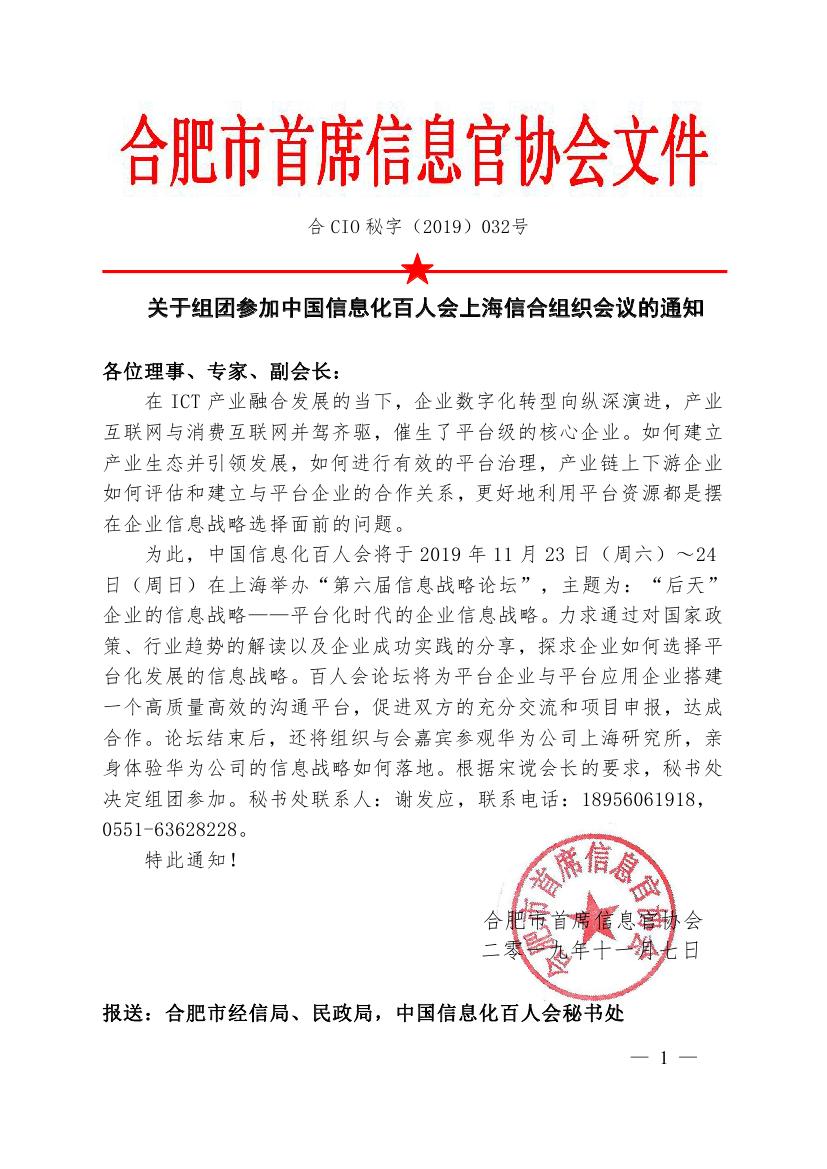 【安徽CIO联盟】CIO协会参加上海信息化百人会议通知