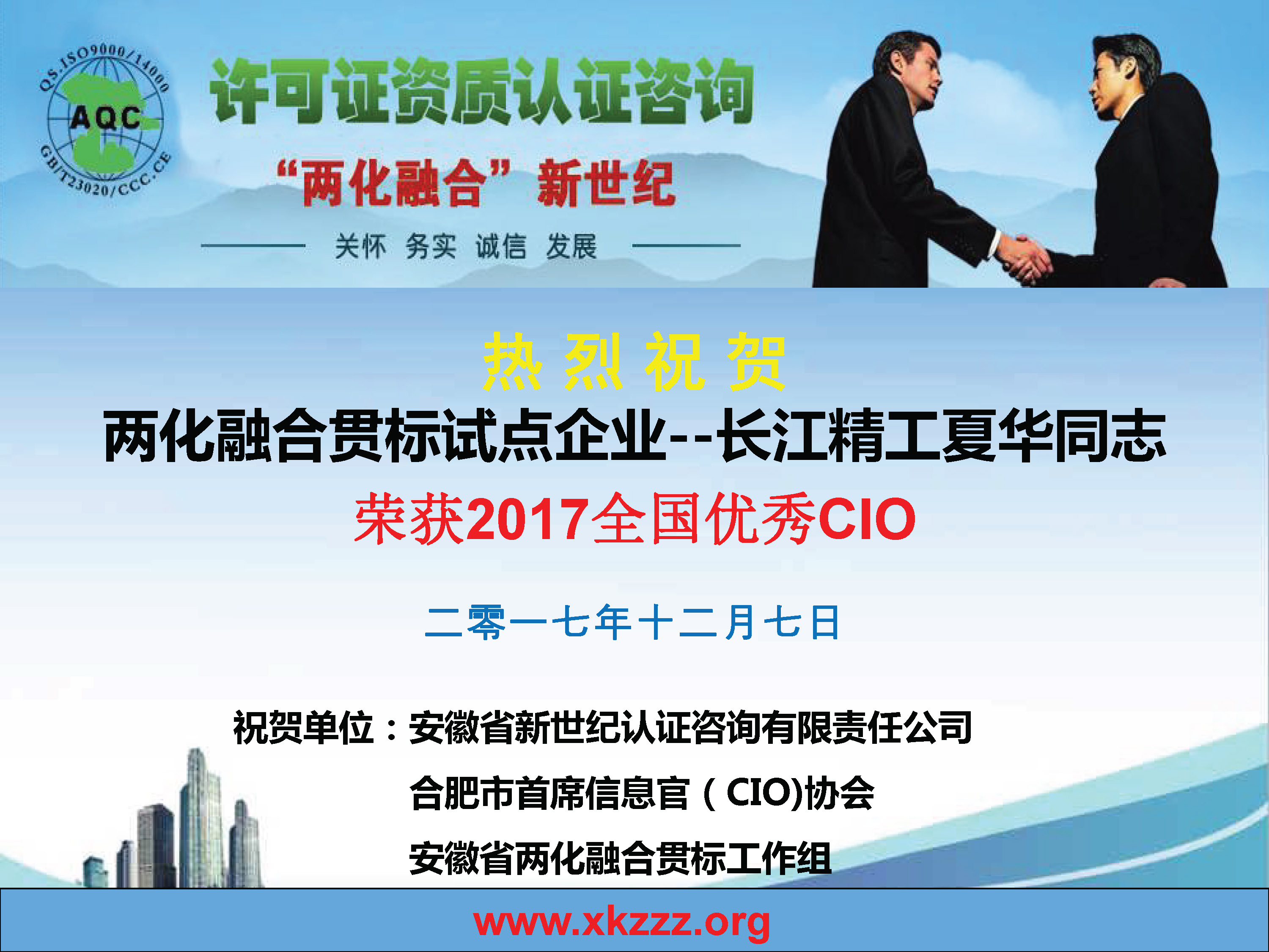 【安徽CIO联盟】祝贺长江精工夏华荣获2017全国优秀CIO