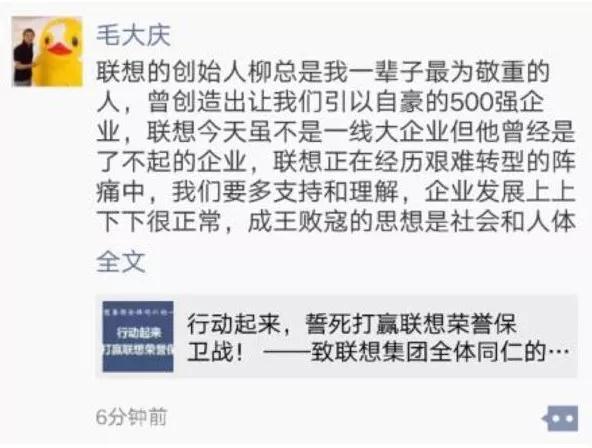看到这里,似乎可以理解,这么多企业家表态支持联想、力挺柳传志的原因了。以下两个企业家的发文,可以进一步帮我们解惑。