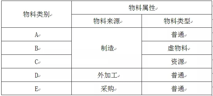 正确地建立物料清单依赖于物料的属性。物料属性是建立物料清单的基础,同时,物料清单也可以验证物料属性的正确性。按物料的“来源”和“类型”属性,可将物料划分为五个类别。