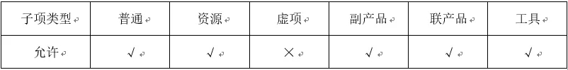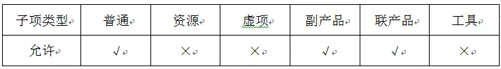 因副产品的价值远低于主产品,所以,在实际经营活动中,经营者不会专门安排生产副产品。因此,不需要为副产品子项定义子项。