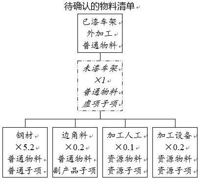 图11 外加工物料“已漆车架”(A001)单层物料清单