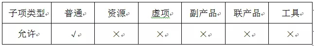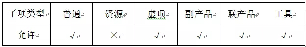 物料A为普通物料,当物料A自身作为子项时,允许的子项类型: