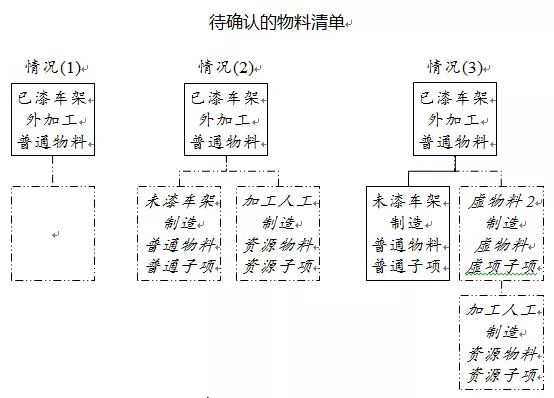 如果物料B的单层物料清单中又出现“虚项”子项,则物料B的单层物料清单存在冗余的结构层,需要提示物料清单管理员。