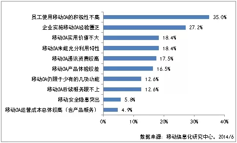 移动信息化研究中心认为,目前阻碍移动OA在企业顺利应用的主要障碍来自两个方面: