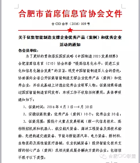 关于征集智能制造支撑企业优秀产品(案例)和优秀企业活动的通知